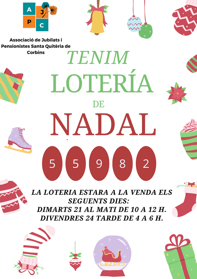 L'Associació de Jubilats i Jubilades informa que ja té la loteria de Nadal.