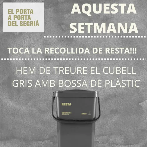 L'Ajuntament recorda que avui dijous, a partir de les 21.00 h, toca treure el cubell de la resta.