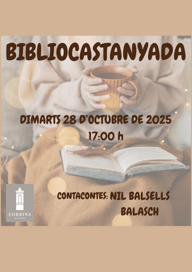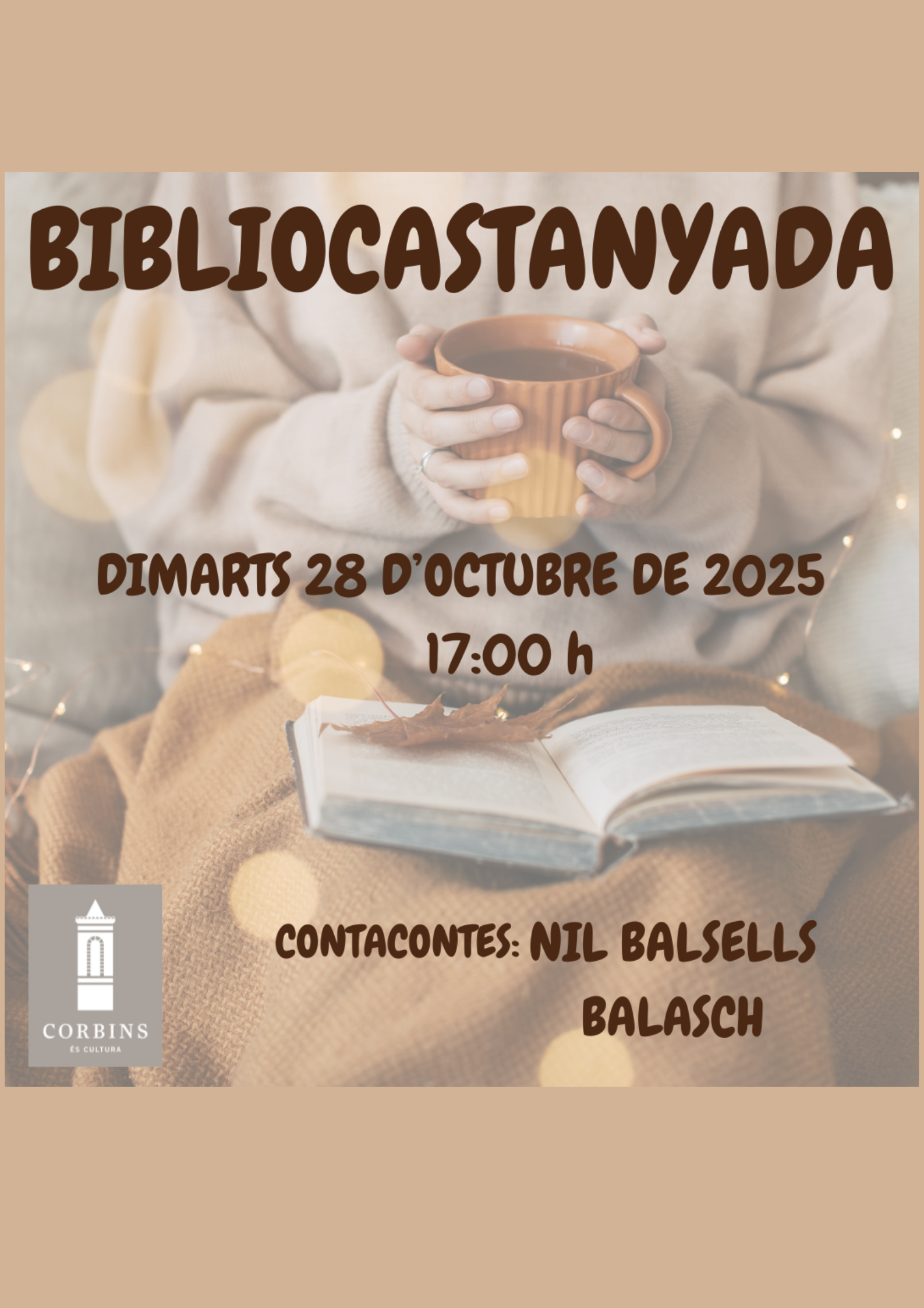 La Biblioteca Municipal de Corbins us informa que el dimarts 28 d’octubre, dins el marc de la Bibliocastanyada 2025, a les 17.00 h, tindrà lloc un contacontes especial a càrrec de Nil Balcells Balasch, alumne de 5è de Primària de l’Escola Sol Ixent de Corbins.