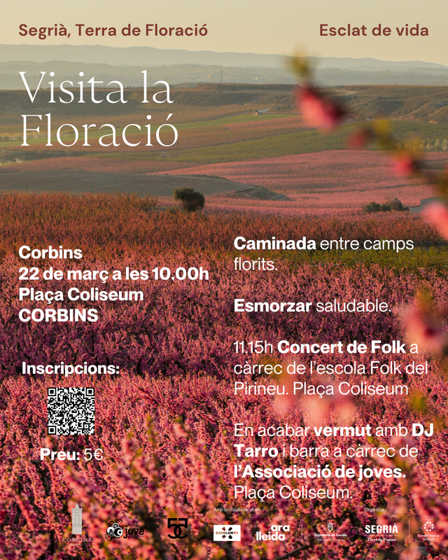 A les 10:00 h sortida des de la plaça Coliseum de Corbins, caminada entre camps florits, esmorzar saludable, 11:15 h concert de folk a càrrec de l'escola Folk del Pirineu a la plaça Coliseum i en acabar vermut amb Dj Tarro i barra a càrrec de l'associació de joves.