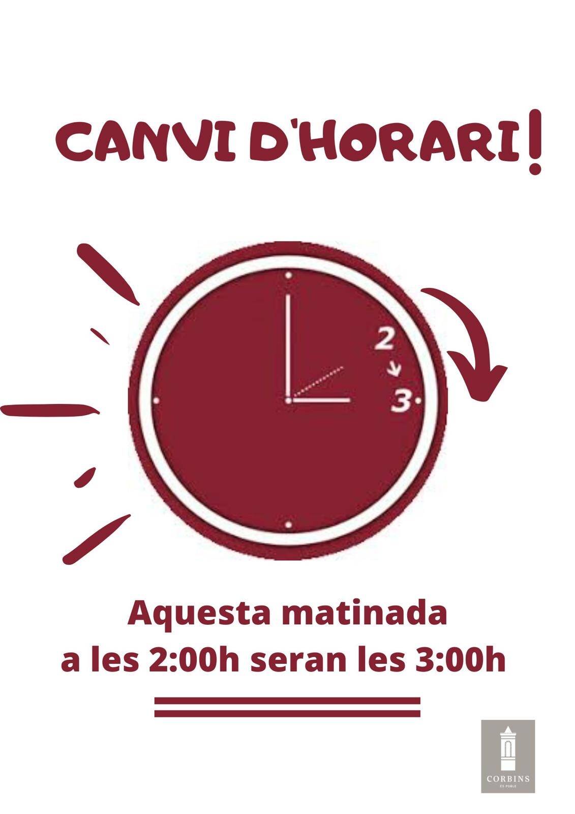 Us recordem que aquesta matinada, a les 02:00 hores seran les 03:00 hores.