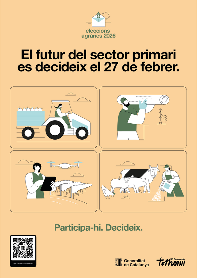 Informem que aquest 27 de febrer són les eleccions agràries, es realitzaran a la sala 1 d'octubre de les 9:00 h a les 19:00 h