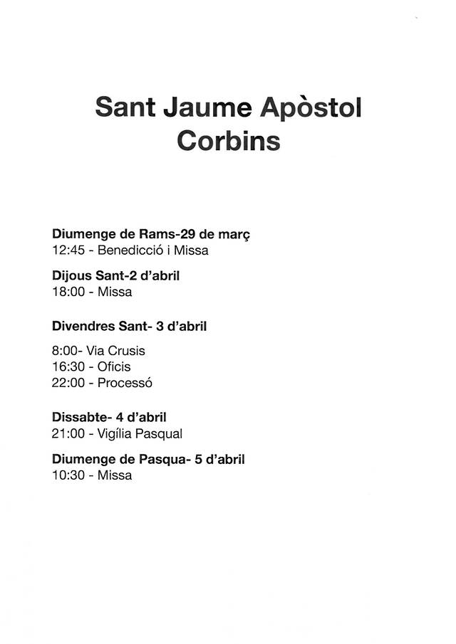 Horari missa Setmana Santa