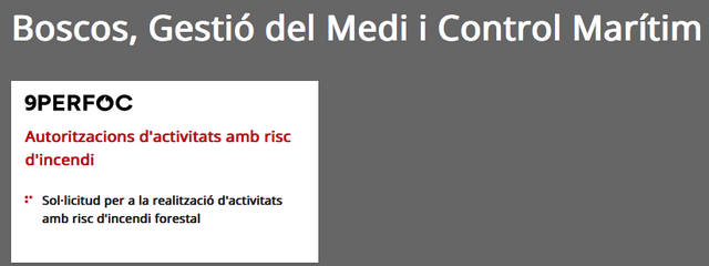 El Departament d'Agricultura, ramaderia, pesca i alimentació de al Generalitat de Catalunya informa, que el 16 d’octubre s’inicia el període de comunicacions d’activitats amb risc d’incendi forestal.