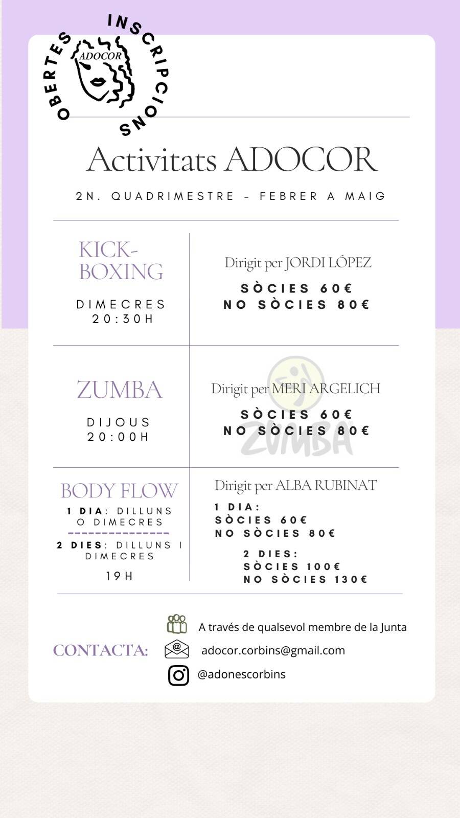 L’Associació de Dones informa que comença el 2n quadrimestre d’activitats: Kick-Boxing, Zumba i Body Flow.