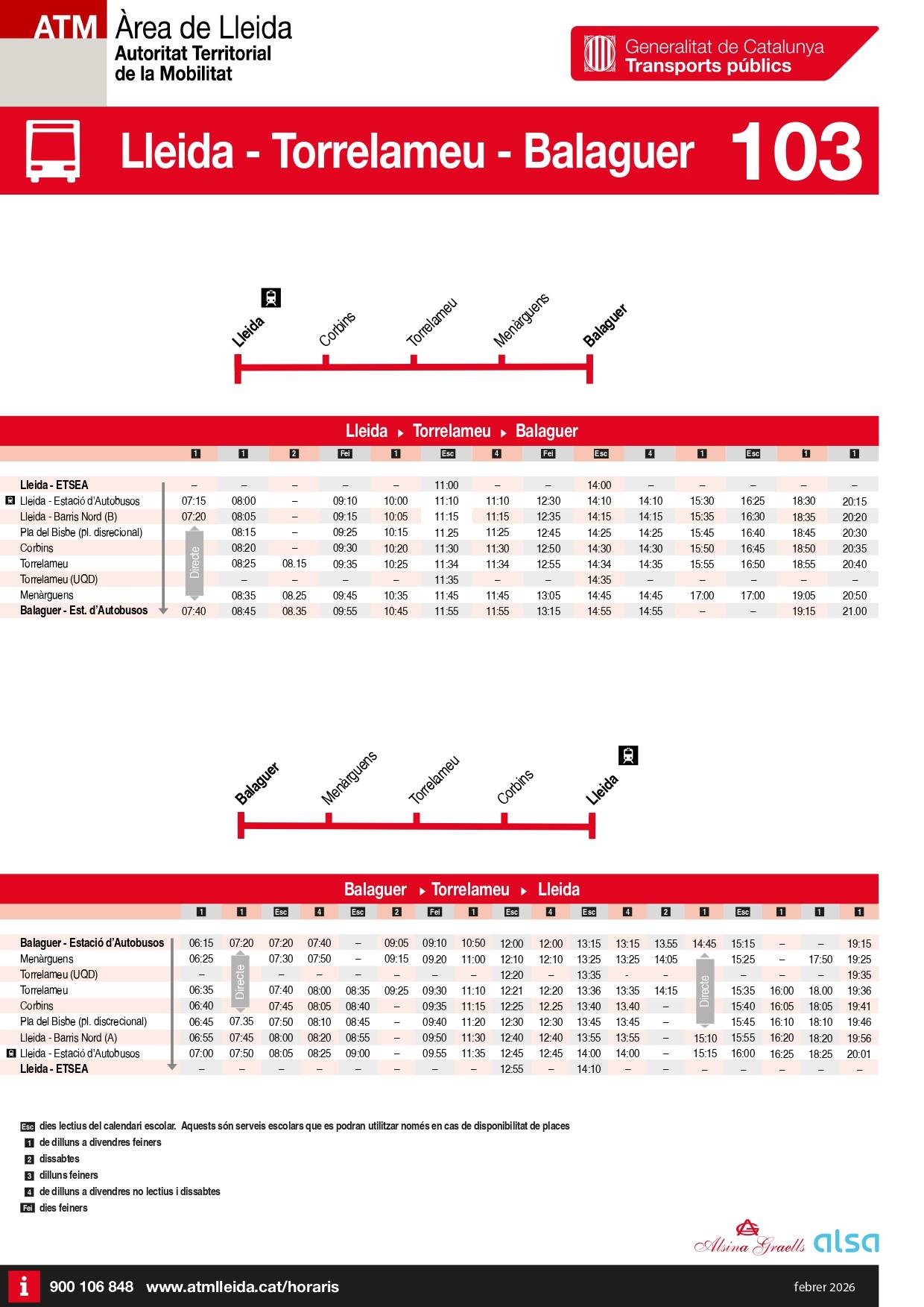 L'ajuntament informa dels nous horaris de bus i les noves parades que efectuarà la línia 103 Lleida-Corbins-Torrelameu-Balaguer.