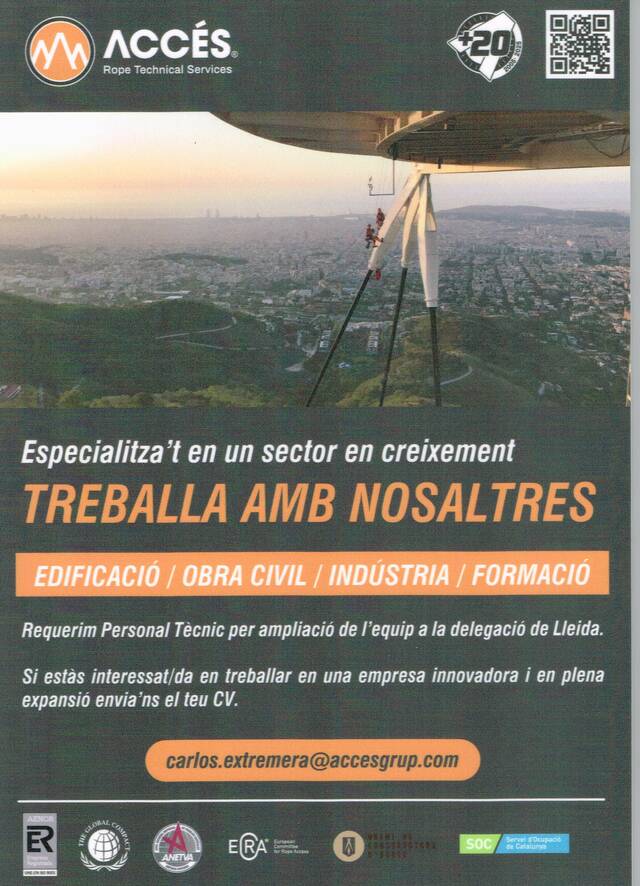 Empresa de treballs verticals requereix personal tècnic per a la delegació de Lleida.