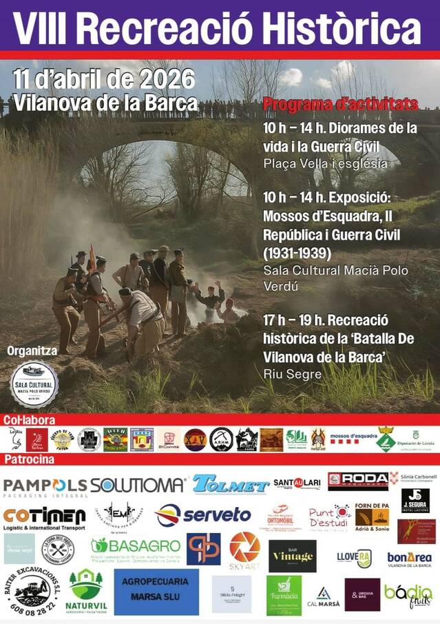 L'Ajuntament de Vilanova de la Barca informa que aquest dissabte 11 d'abril és dura a terme la recreació històrica de la guerra civil i la II república