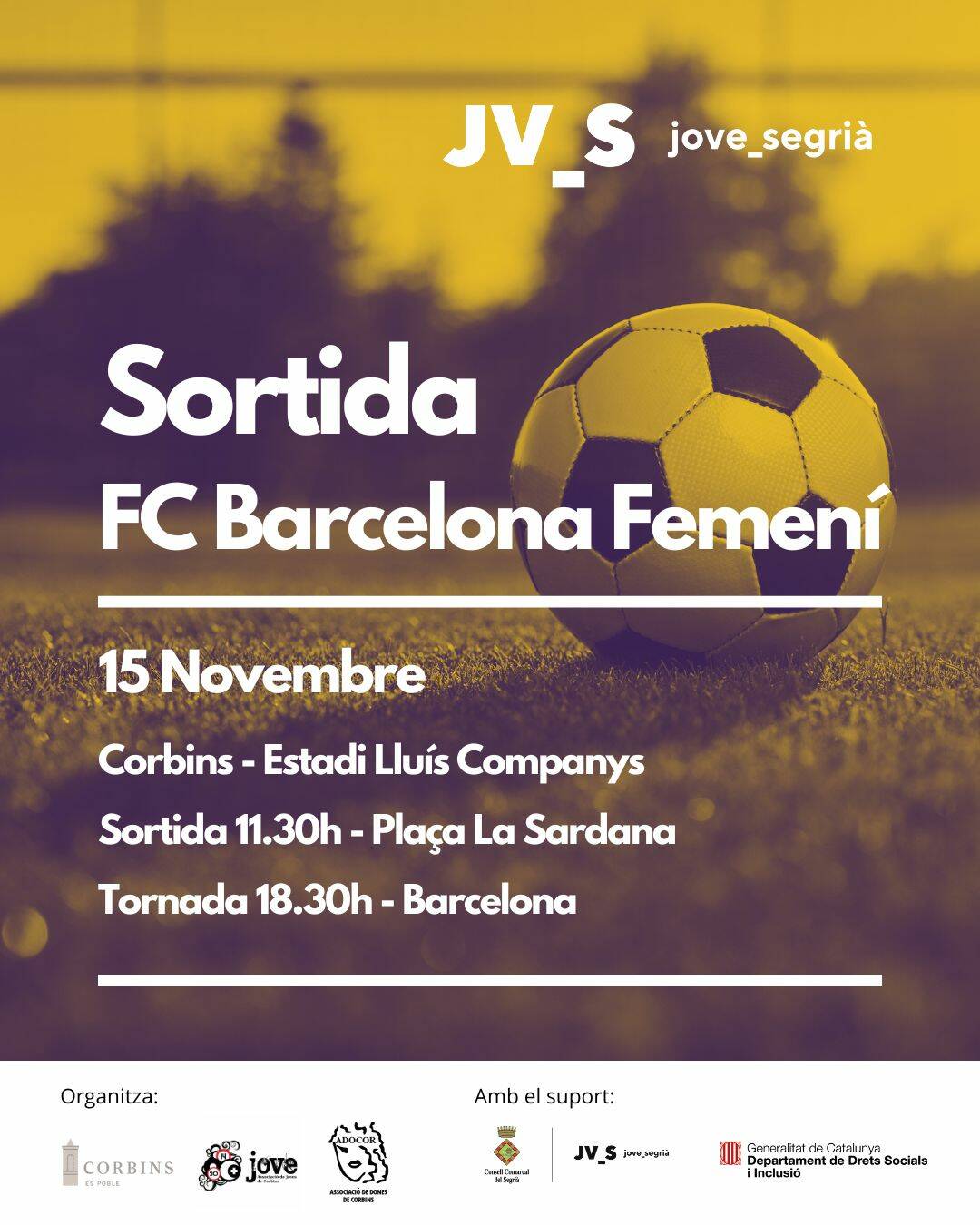 L’Associació de joves de Corbins "Lo Jovent", juntament amb l’Associació de Dones de Corbins "ADOCOR" i l’Ajuntament de Corbins, organitzen una sortida a veure un partit del FC Barcelona Femení!