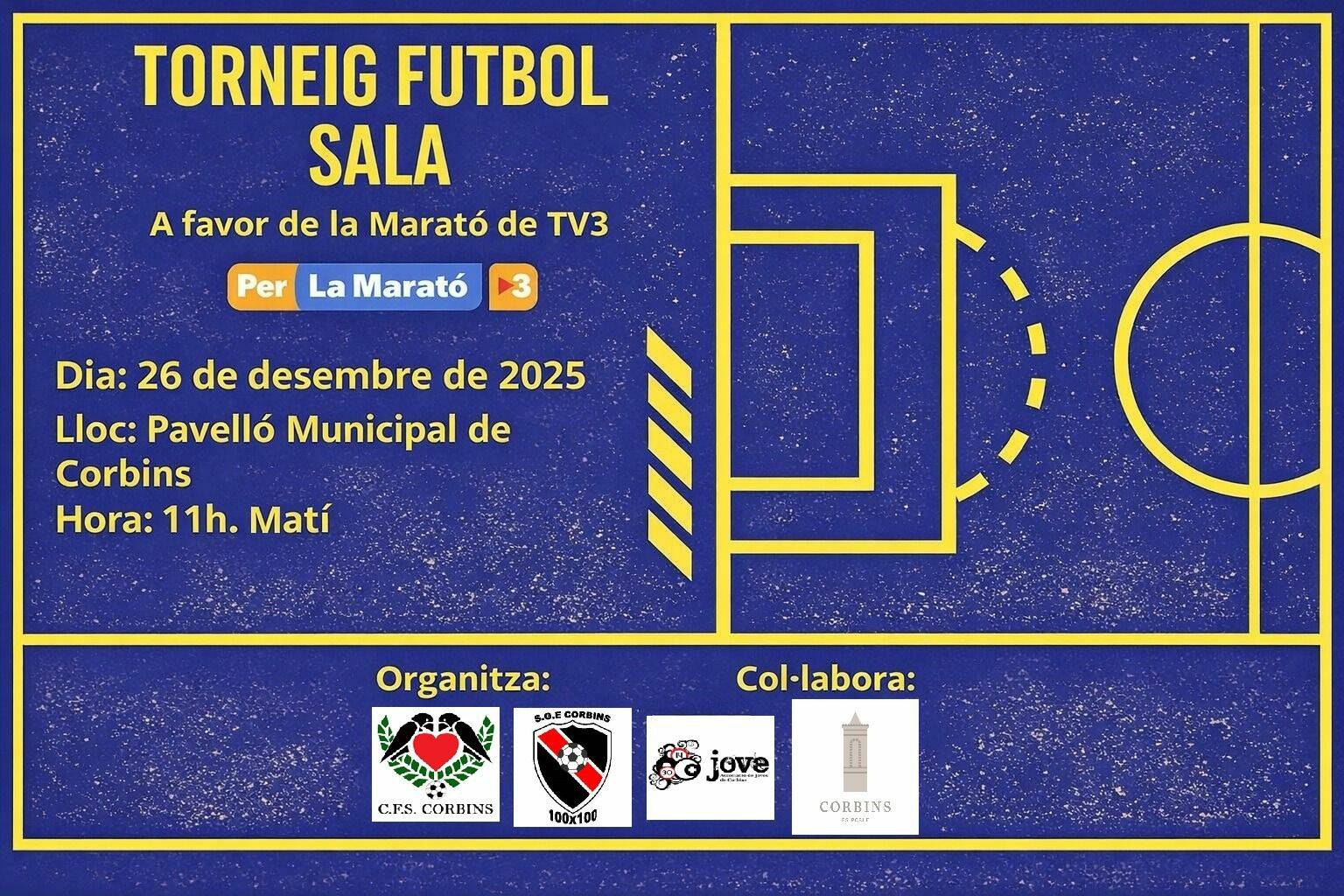 El club de futbol sala Corbins, l'associació 100x100 i l'associació de joves organitzen un any més el torneig solidari de futbol sala per la marató de 3Cat.
