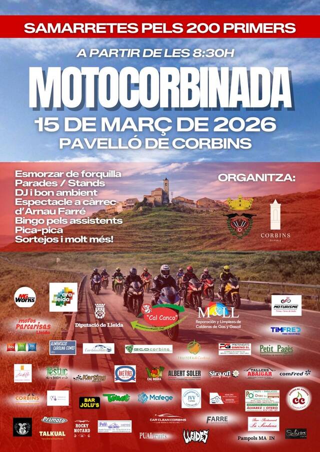 Demà diumenge 15 de març, us esperem a la motocorbinada!